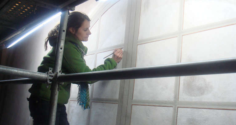 Technique : Glacis à l'huile sur support mortier de chaux, plâtre et pierre (sculptures).