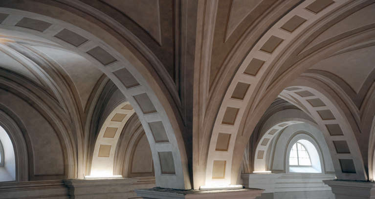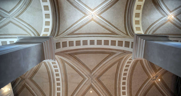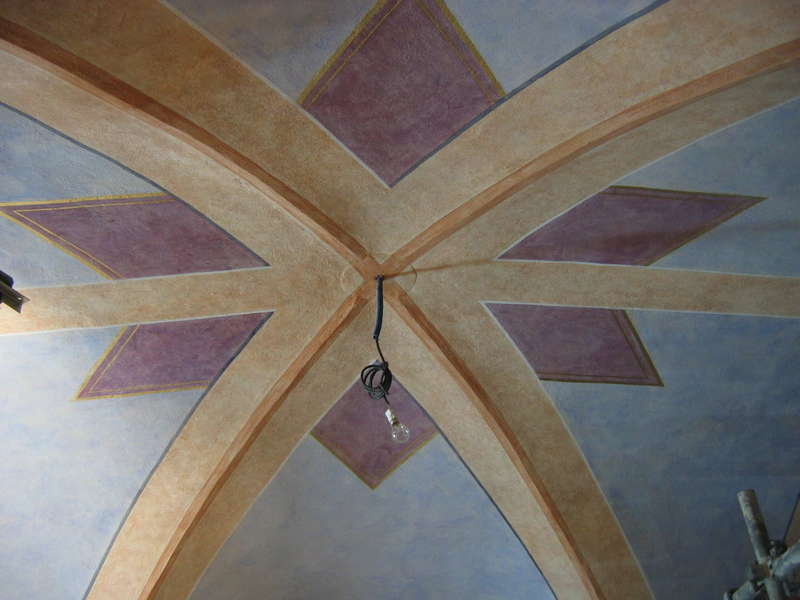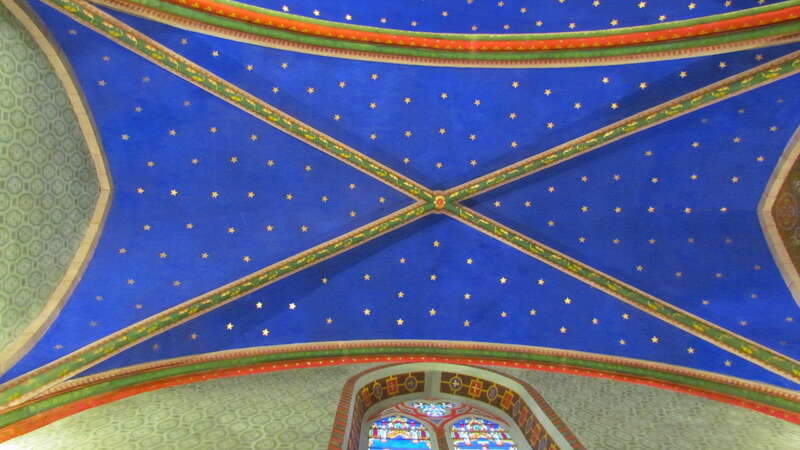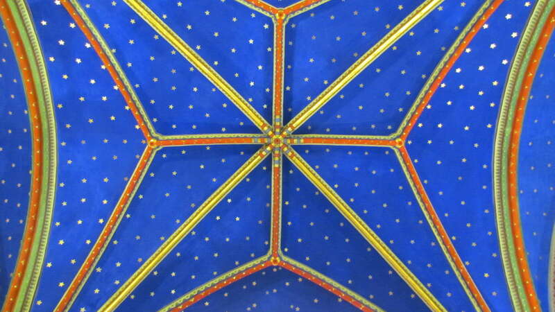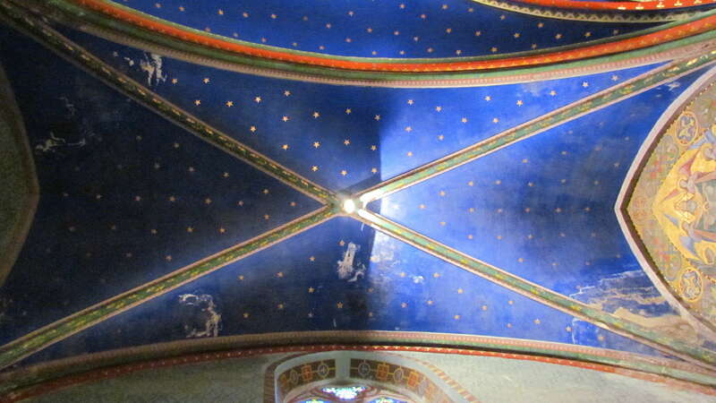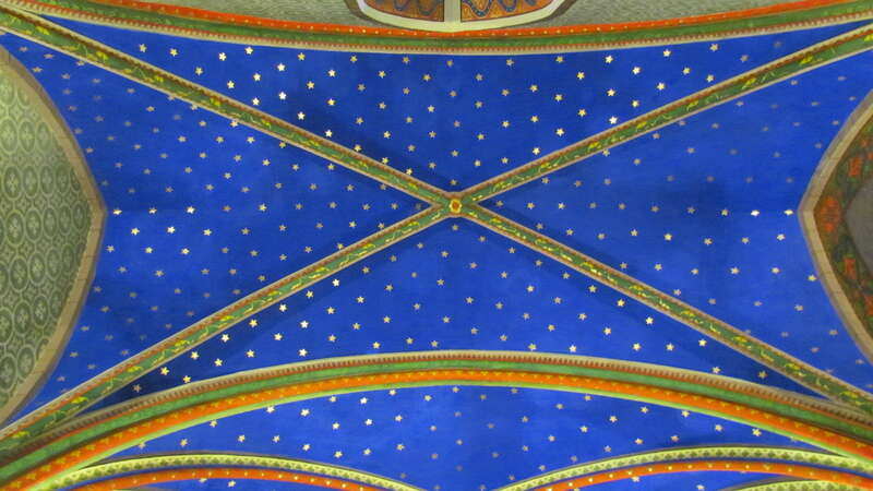 Descriptif : Décors ornementaux sur les voûtes et les nervures. Ciel étoilé