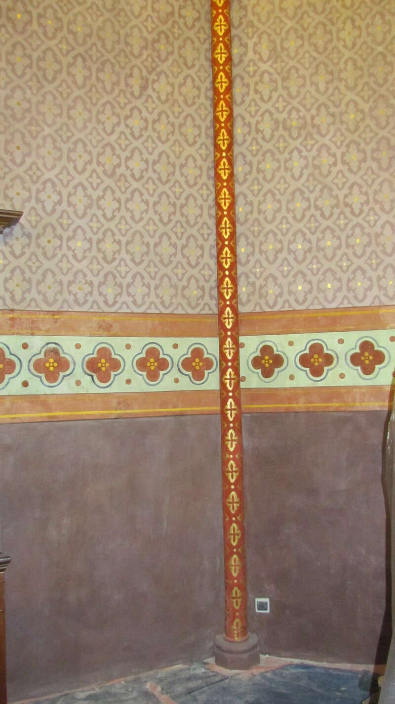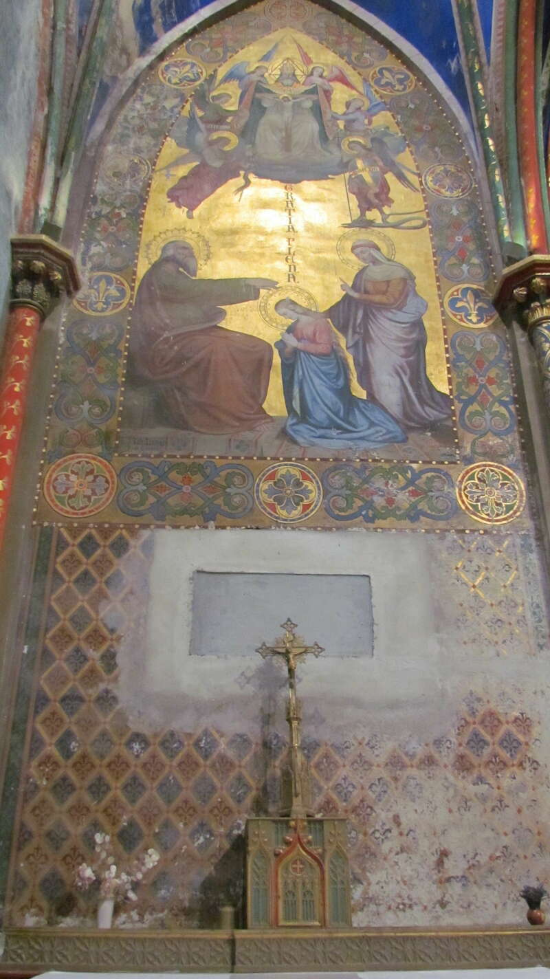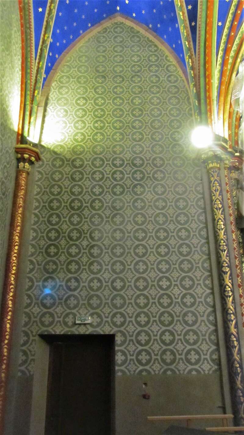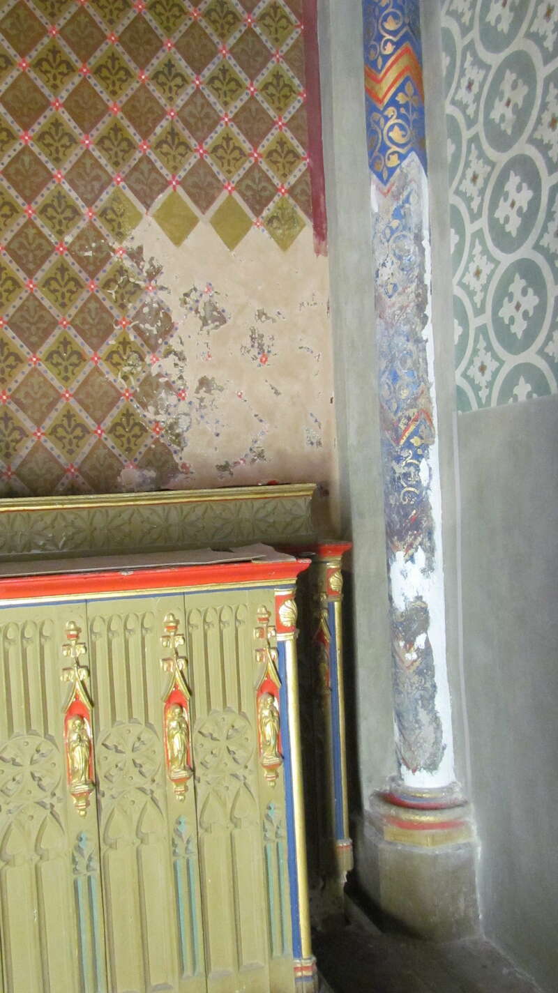 Descriptif : mise au jour de décors néo-gothiques, conservation et restauration (chœur). Restitution complète des dorures à la feuille d'or.