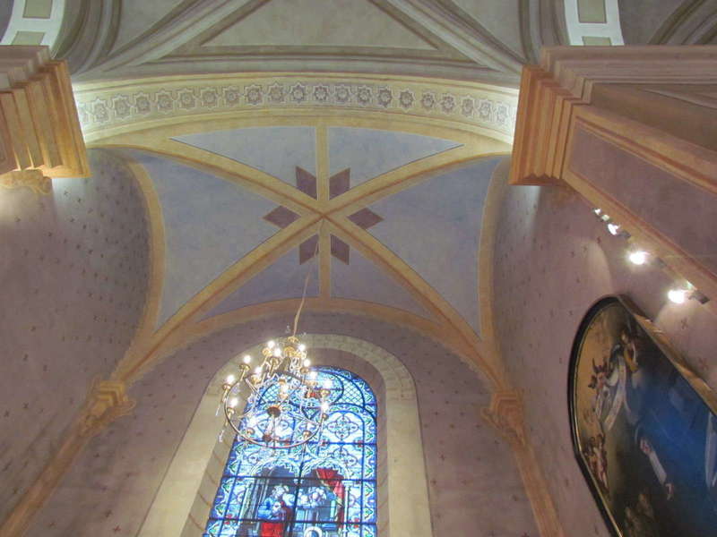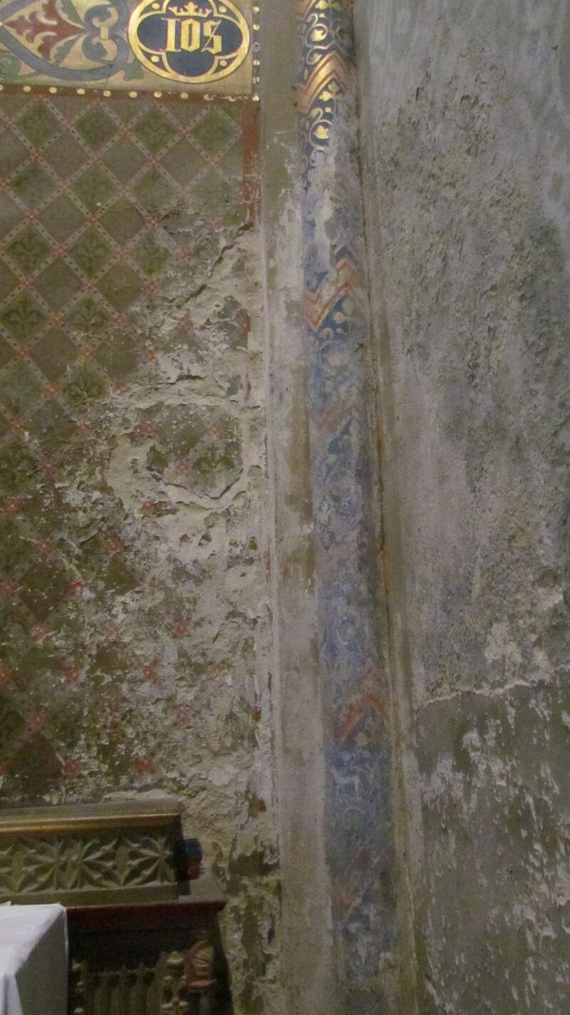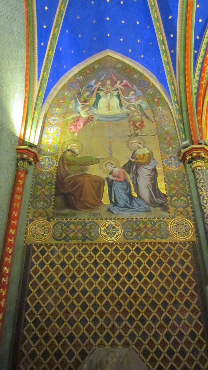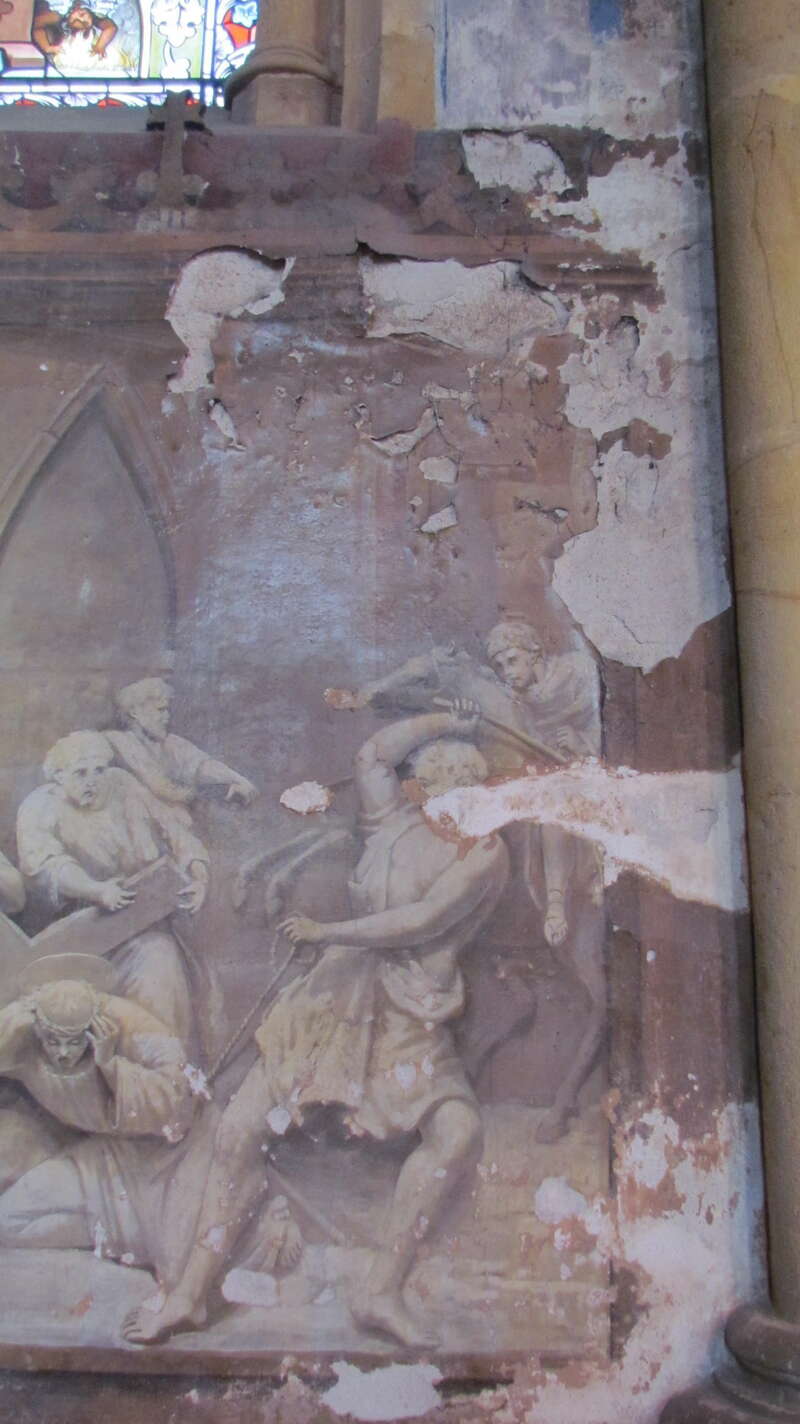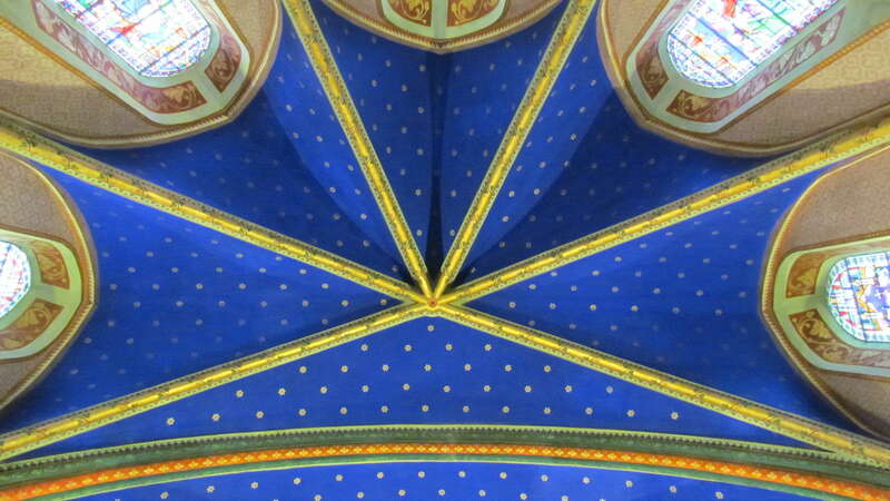 Descriptif : mise au jour de décors néo-gothiques, conservation et restauration (chœur). Restitution complète des dorures à la feuille d'or.