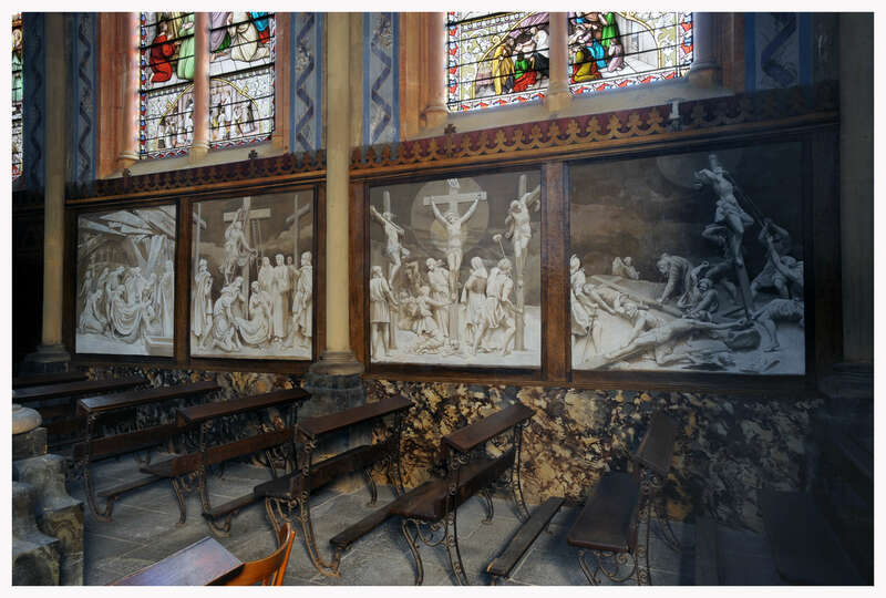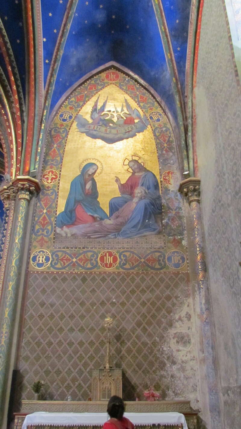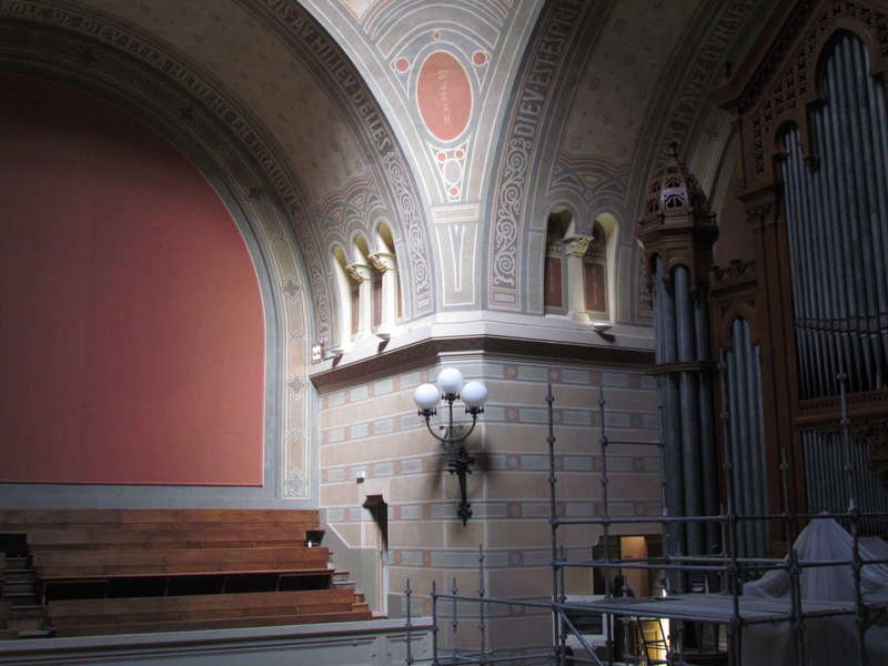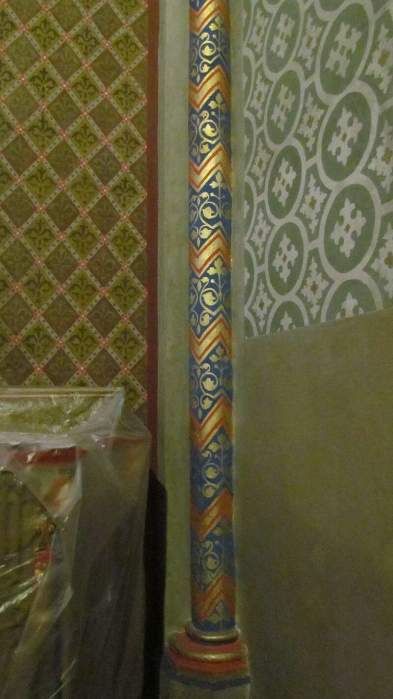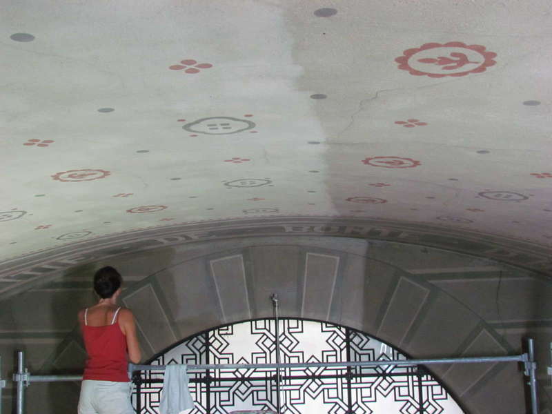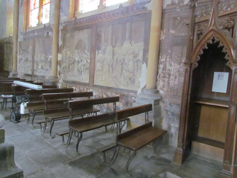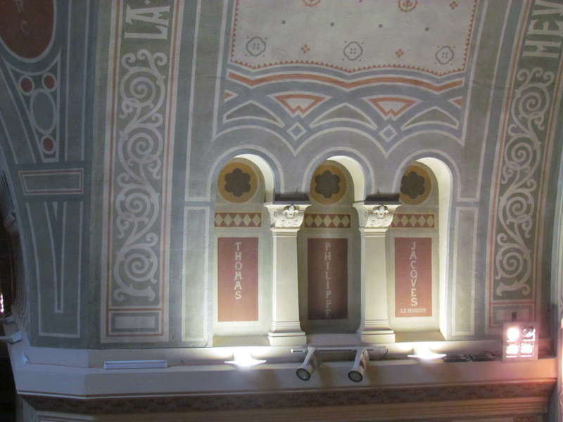 Descriptif : mise au jour de décors néo-gothiques, conservation et restauration (chœur). Restitution complète des dorures à la feuille d'or.