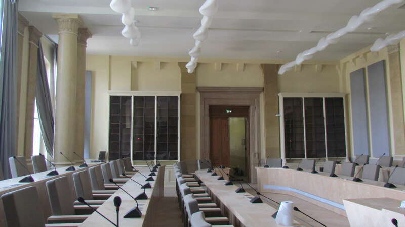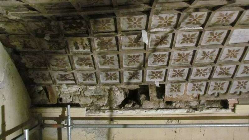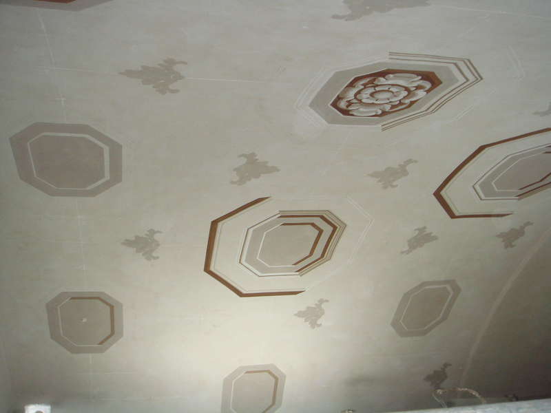 Descriptif : Plafond à caissons en bois polychrome de 150m2